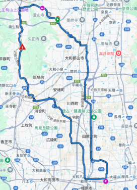 道の駅クロスウェイなかまち ~ 菜畑 ~ 竜田川 ~ 三室山 ~ 飛鳥川を自転車道を南下 ~ 藤原京跡(昼食) ~ 寺川 ~ 富雄川 ~ クロスウェイなかまち(解散) 距離:約60km